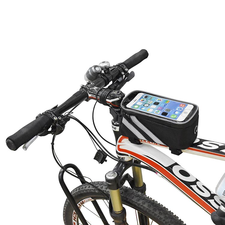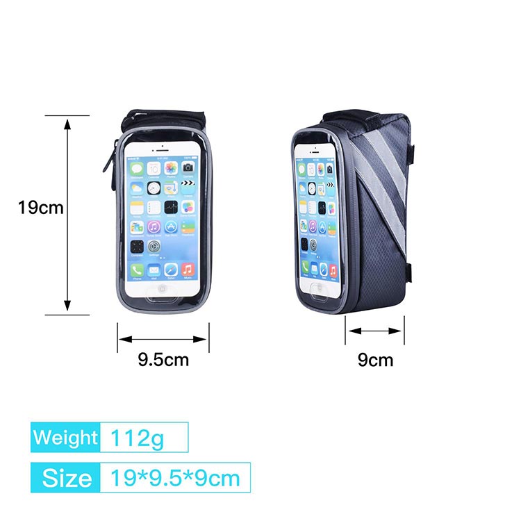 size: M for 4.7- 5.1” mobiles, L for 5.1-5.5” mobiles mateiral: 300D nylon oxford + PVC construction: PVC Windows+double zipper pocket,The bike phone bag is constructed of tough EVA with 3D die-casting process. The bike bag will look stiff at any time. The Outer material Carbon fiber can be highly abrasion proof and durable. Therefore, this bike handlebar bag is dynamic, stylish, durable, shake-proof, pressure-proof and non-forming. Your mountain bike, road bike, folding bike and electric bike deserve this bike phone mount bag Selling point: Durable, water repellent Reflective top and side piping.