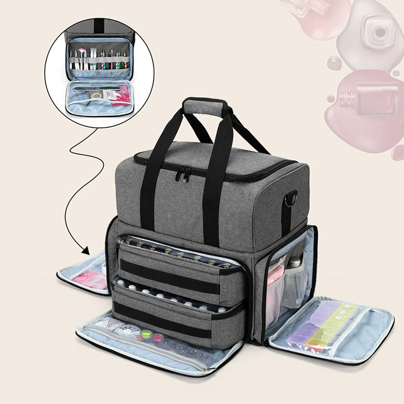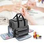 NAIL POLISH STORAGE: The bottom compartment contains 2 removable cases. Each case holds up to 24 bottles of 15ml (0.5 fl. oz) nail polish. The bottle dividers in the case are flexible and detachable.