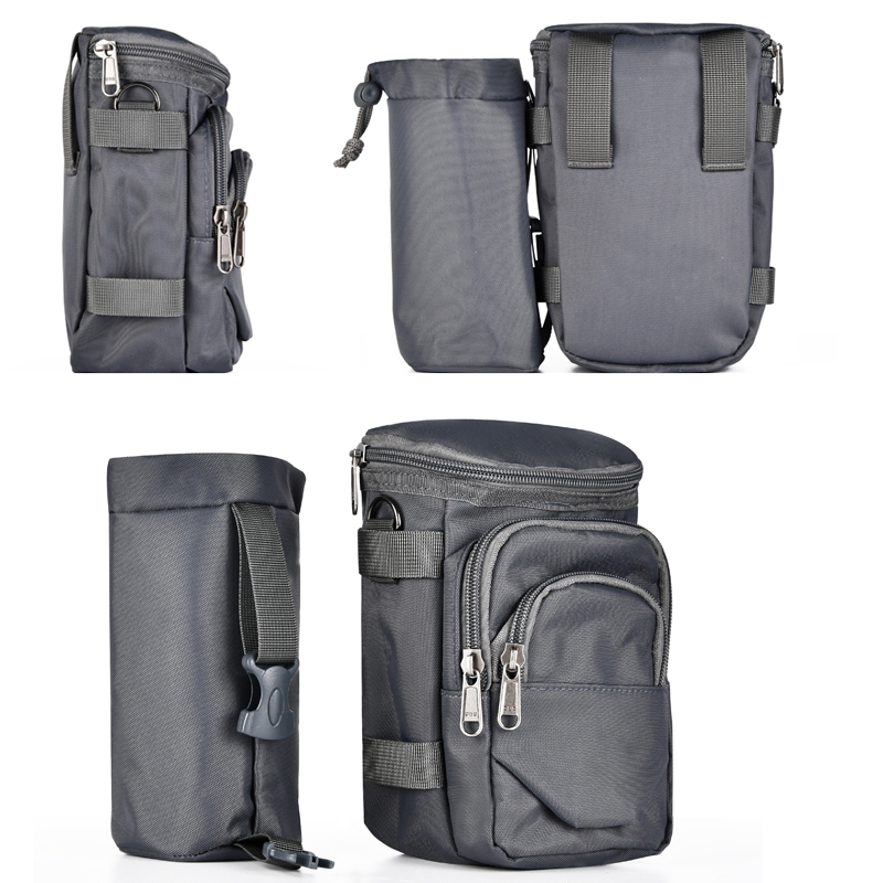 Construction: 3 zippered pockets and a detachable water bottle holder.