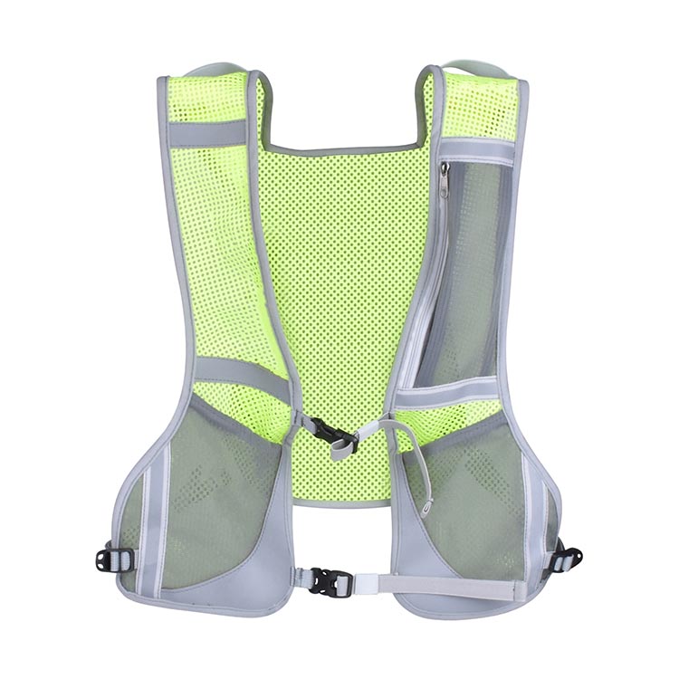 Construction: 1 main pocket for bladder + 2 water bottle holders and a zippered pouch on the shoulder strap.
